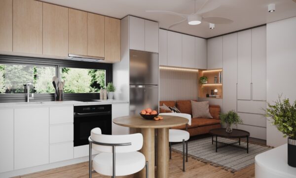 - Timber veneer finish to cupboard fronts, including built-in concealed cabinetry handles (depending upon design)
