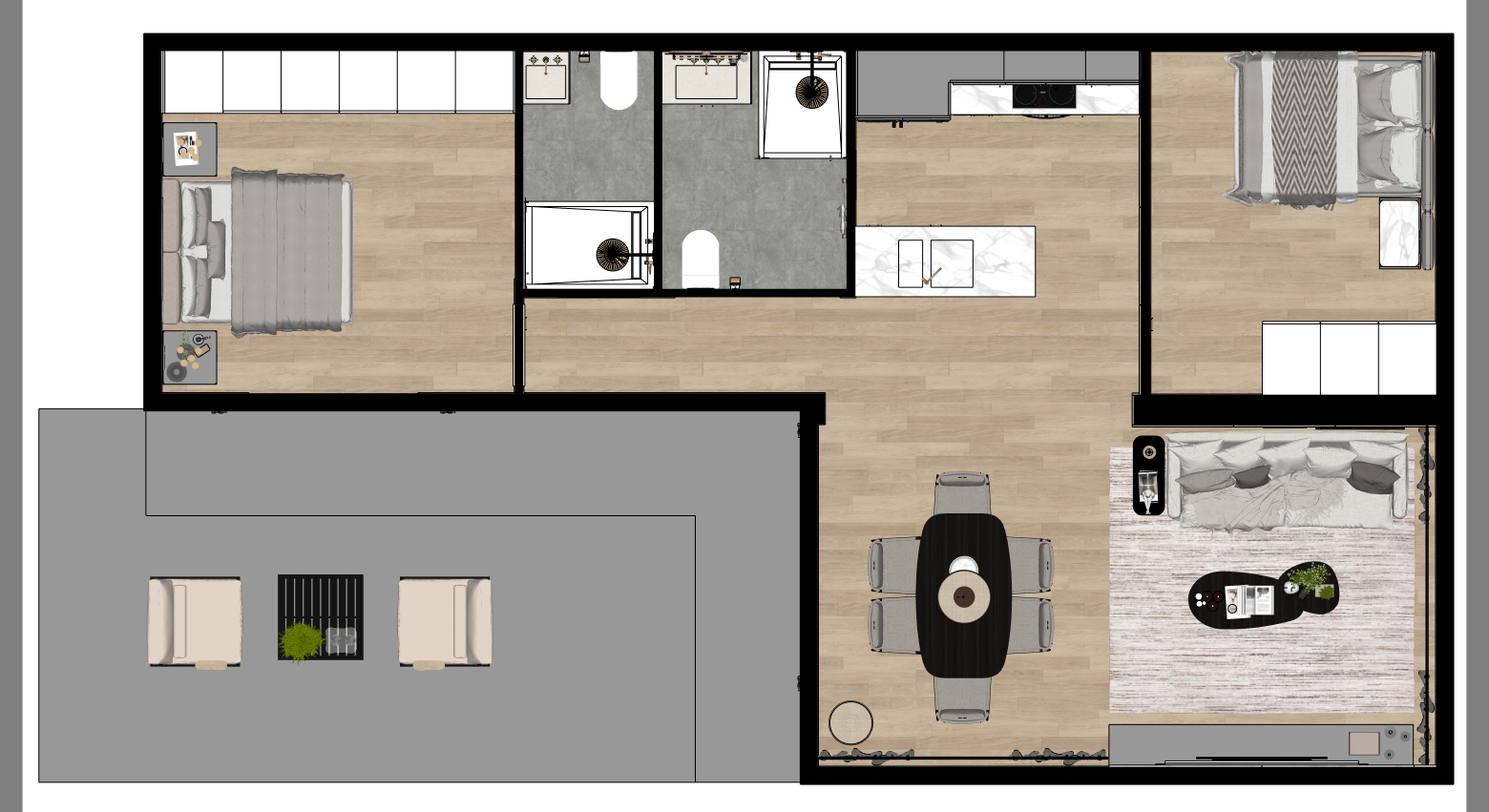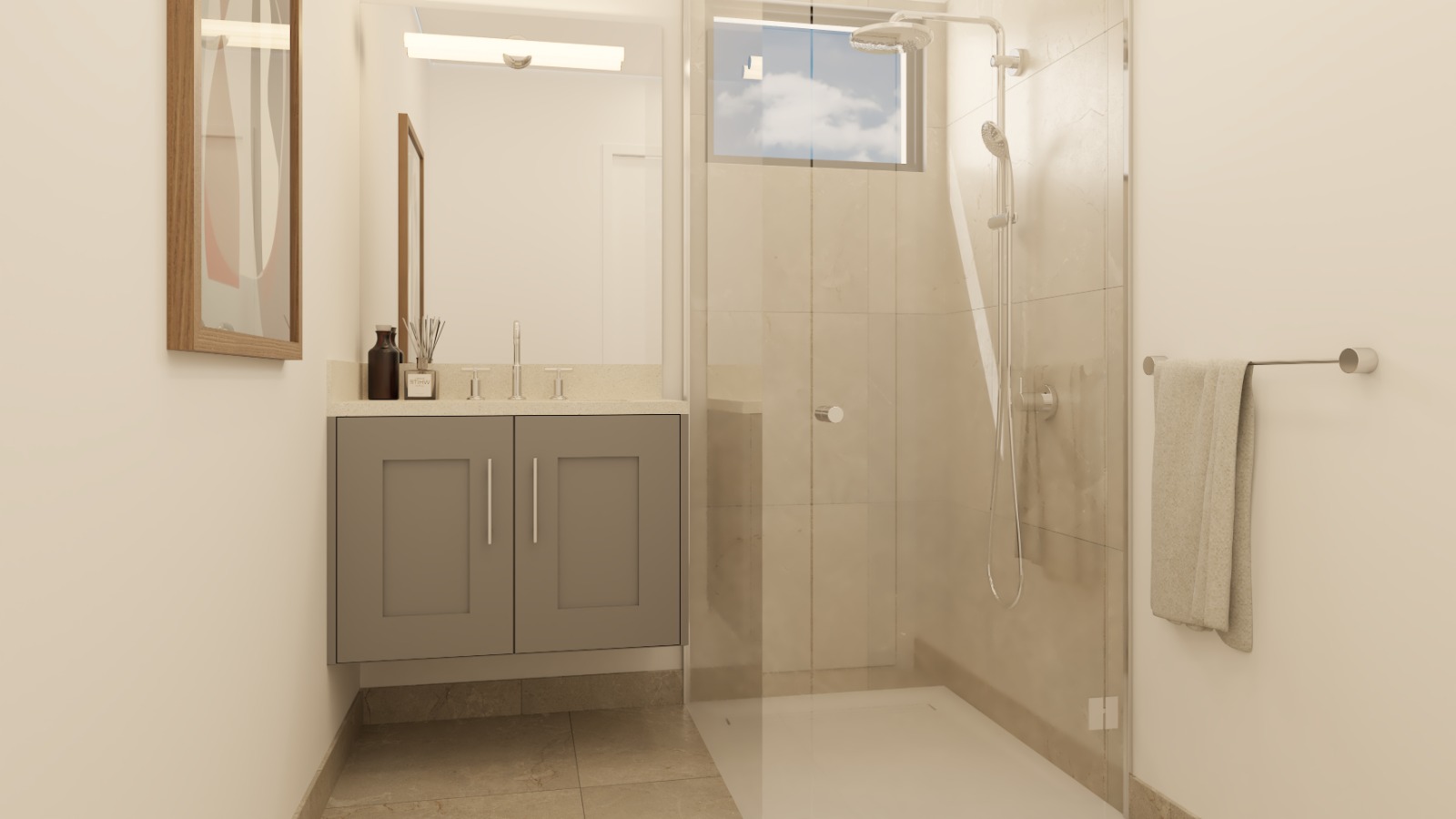 - Double-glazed tempered glass (5mm) in aluminium-framed windows and glass sliding doors